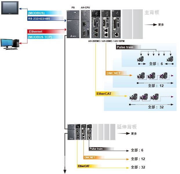 - DMCNET:12軸最小同步時間為 1 ms