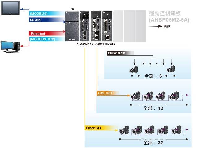 提供 EtherCAT、DMCNET 與 Pulse-train 等運動控制接口