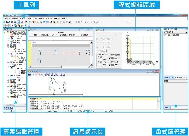 整合運動控制編輯:ISPSoft V3將邏輯編程與運動編程整合在同一套軟件上,并提供符合國際標準規格 PLCopen® 的功能塊以及臺達提供的豐富功能塊。