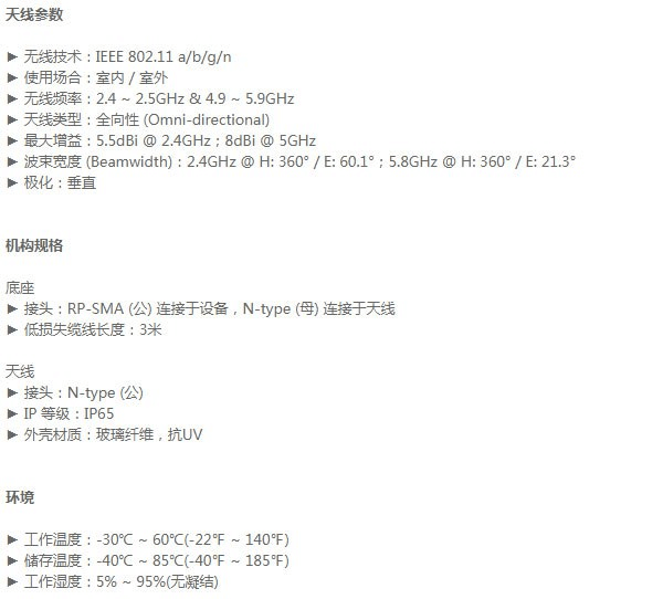 高增益天線----IEEE 802.11 b/g/n 2.4GHz